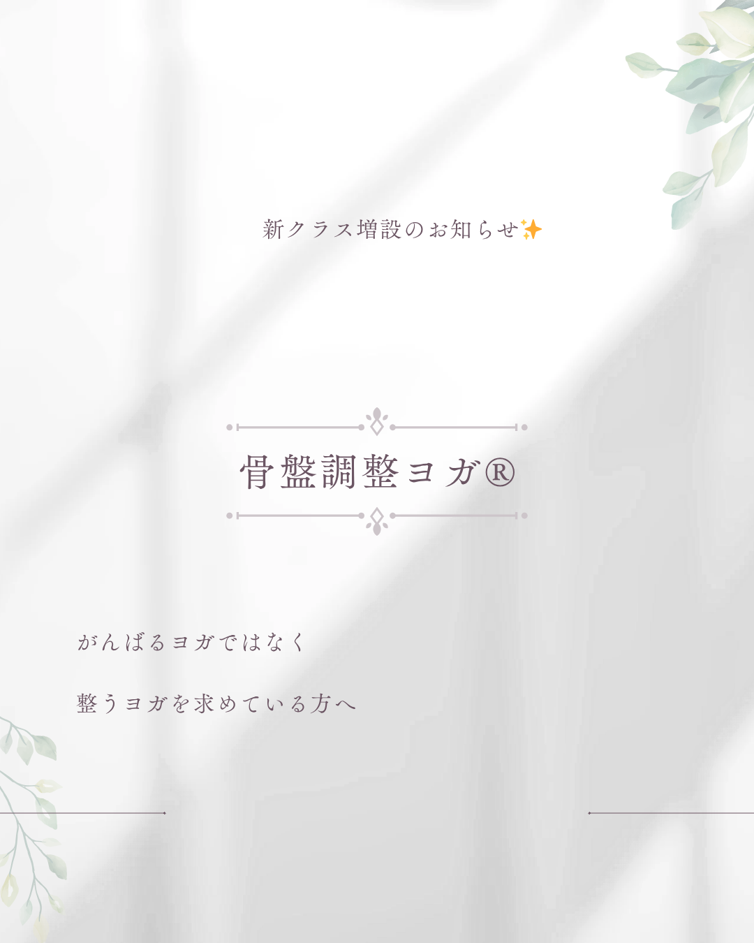一人ひとりに合わせた細やかなサポートをお約束。ヨガ初心者の方でも安心して挑戦できます。
