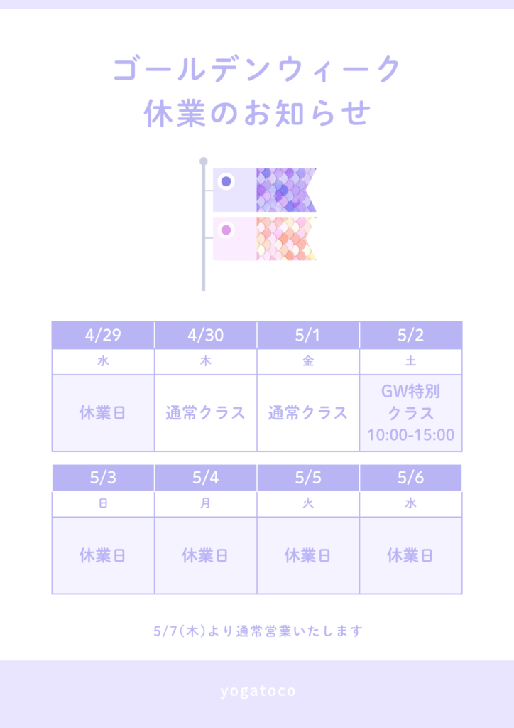 CONTENTS コンテンツ 2026.04.29 GW休業日 ブログ お知らせ GW休業日をお知らせです。 休業中にいただいたお問い合わせは、5/7以降に対応させていただきます。ご迷惑をお掛け致しますが、どうぞよろしくお願いします。 一覧へ戻る