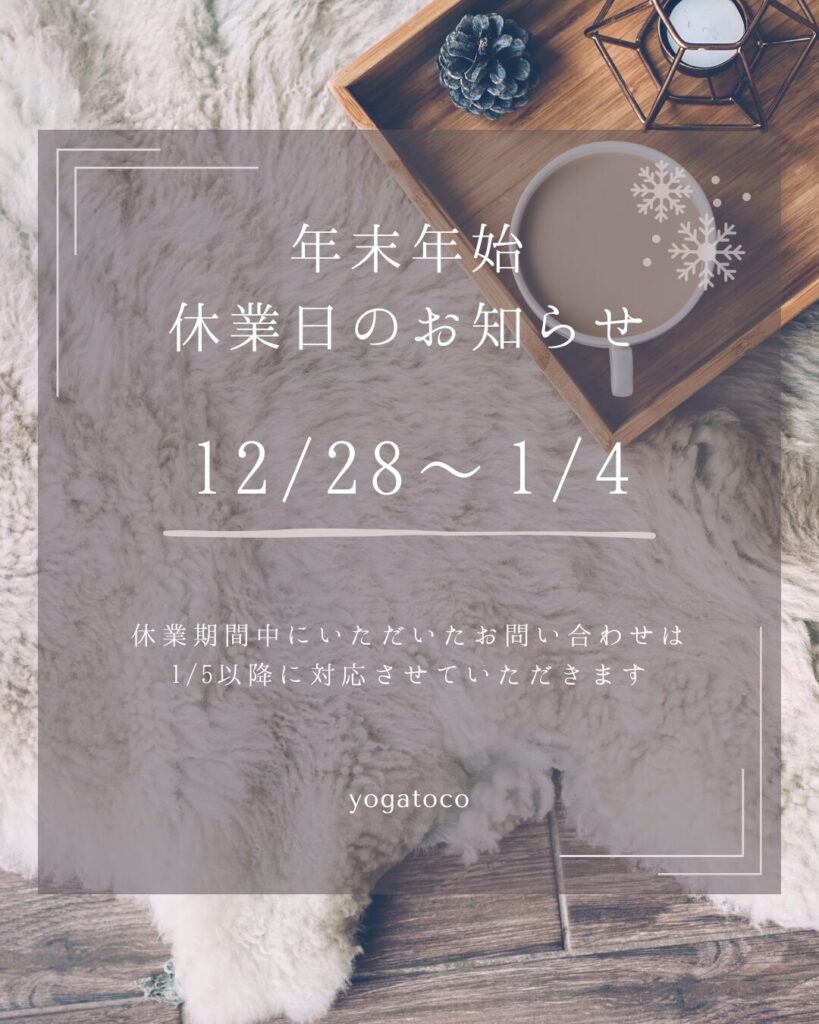 CONTENTS コンテンツ 2025.12.27 冬季休業日 休講・変更 冬季休業日をお知らせです。 休業中にいただいたお問い合わせは、1/5以降に対応させていただきます。ご迷惑をお掛け致しますが、どうぞよろしくお願いします。 一覧へ戻る